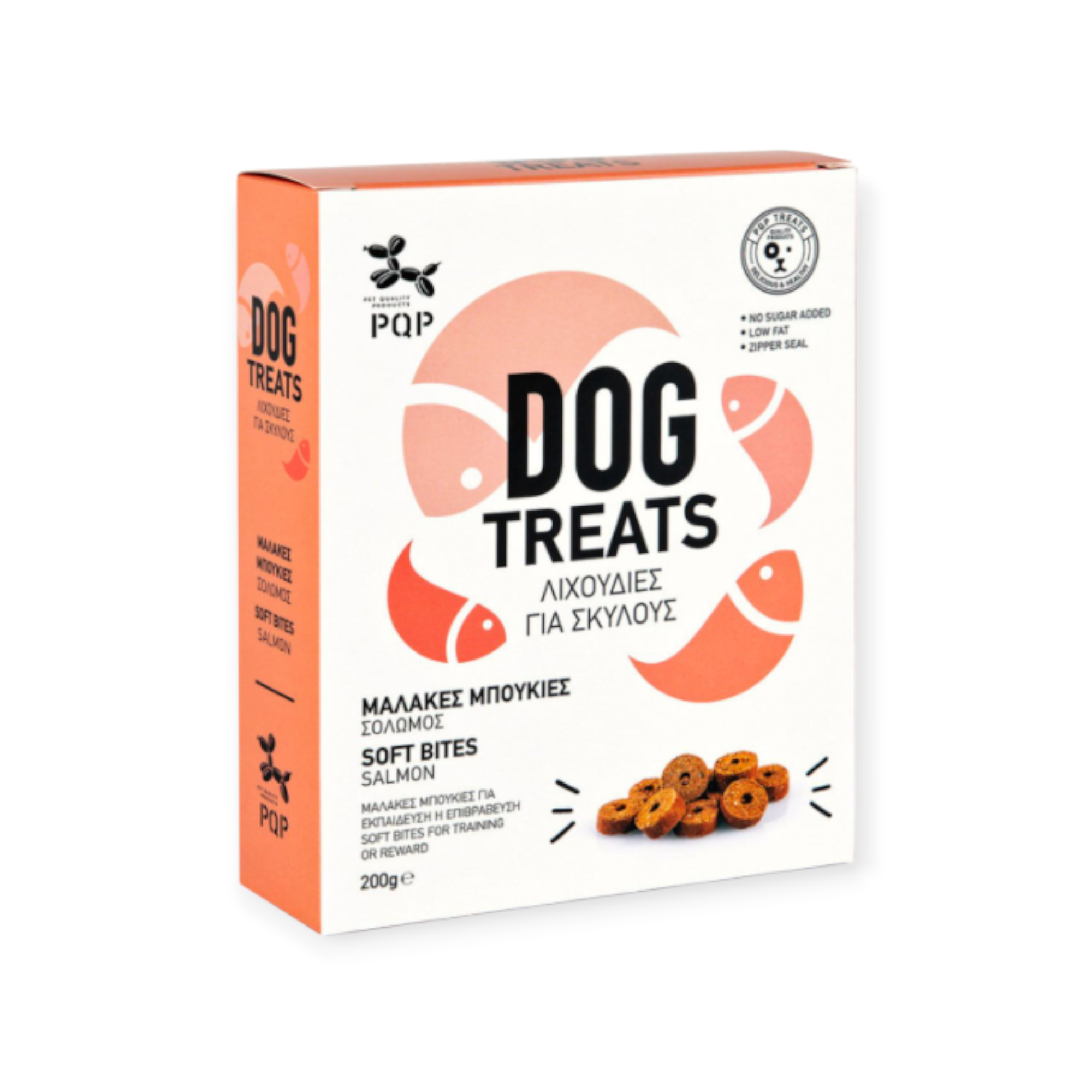 Λιχουδιές σκύλου μαλακές μπουκιές με σολομό.